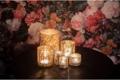 Set Van 2 X Theelichthouder Ø 13×16 Cm Goudkleurig Glas Rond Waxinelichthouder Windlichthouder