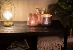 Set Van 2 X Theelichthouder Ø 15×20 Cm Goudkleurig Bruin Glas Rond Waxinelichthouder Windlichthouder