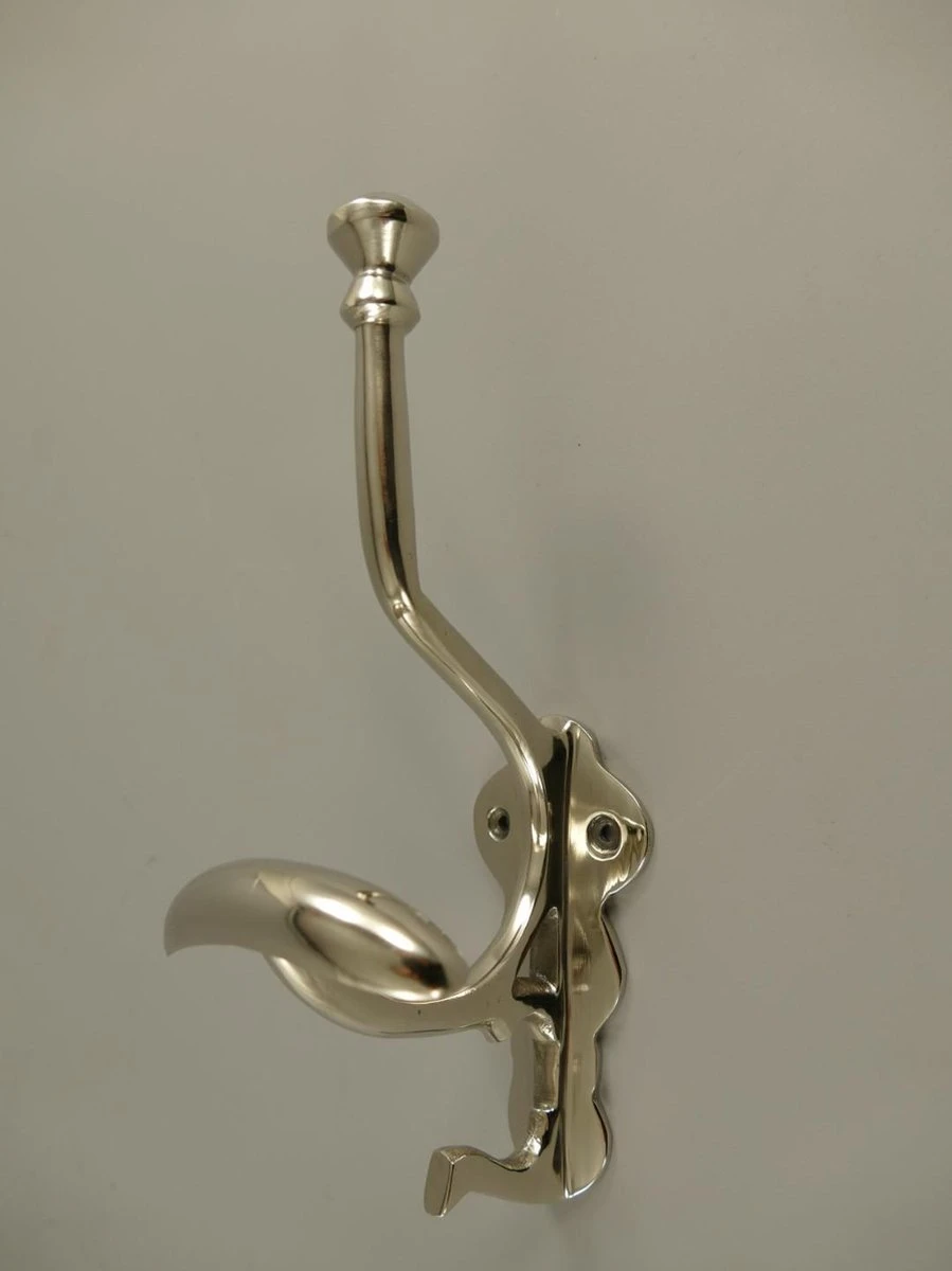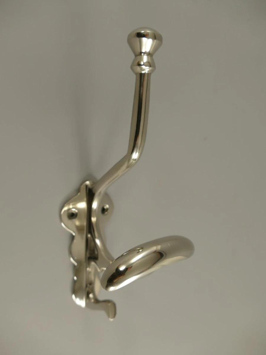 Strakke modern ogende kapstokhaak voor aan de wand, gemaakt van vernikkeld aluminium.