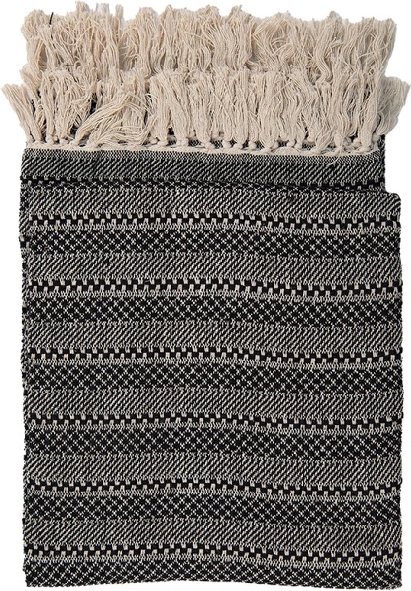 Plaid Deken Zwart, Beige Katoen