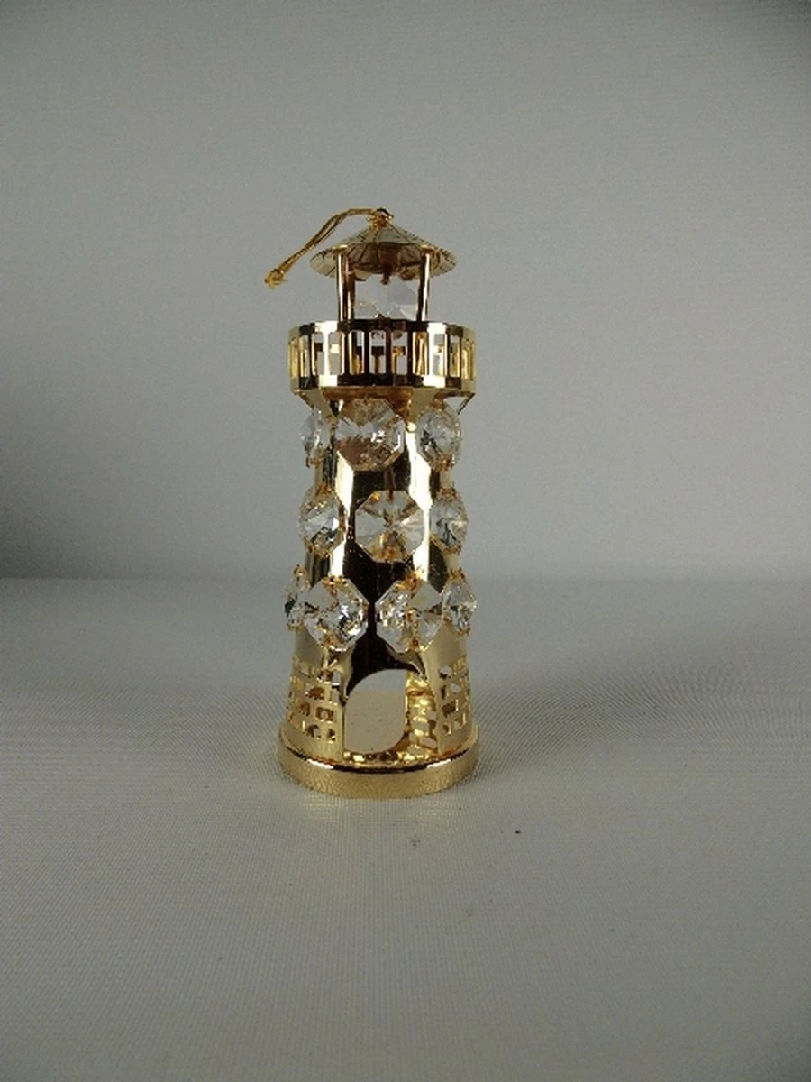 Miniatuur van een vuurtoren in het goud. Leuk te combineren met andere miniatuurtjes. Deze vuurtoren heeft kristal steentjes.