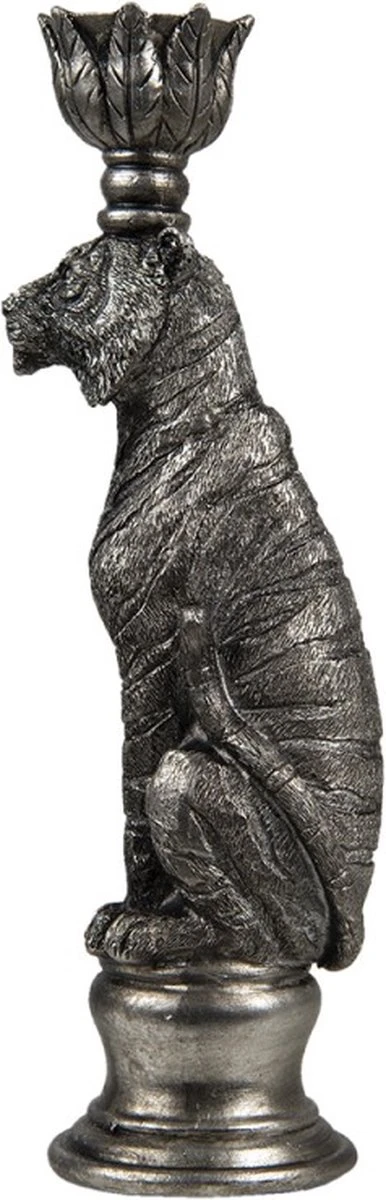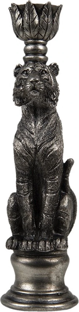 Set van 2 x Vintage landelijk zilverkleurig decoratie beeld van een zittende leeuw van ons huismerk. Kaarsenstandaard Kaarsenhouder Decoratie Beeld