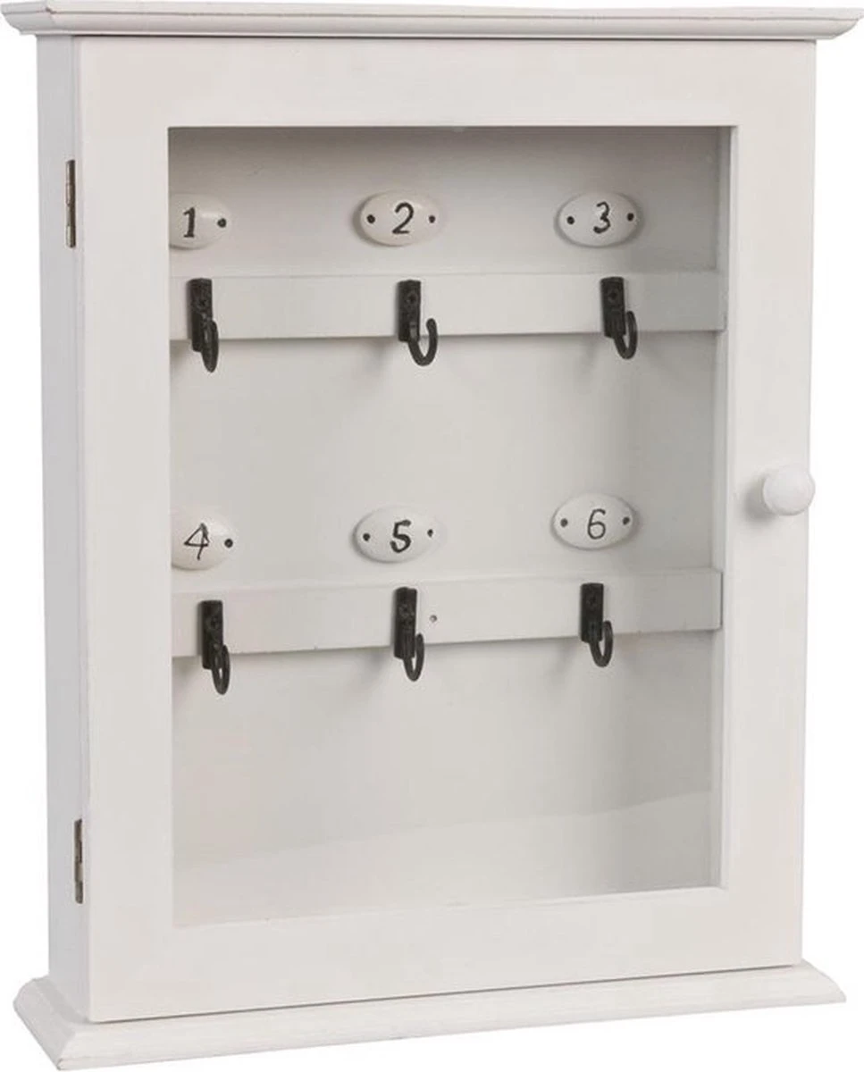 Landelijk Wit Sleutelkastje Sleutelhouder Sleutelrekje Hout Glas Rechthoek