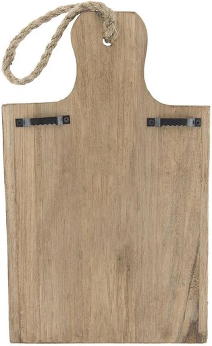 Bruin houten landelijk sleutelrekje in de vorm van een snijplan van ons huismerk