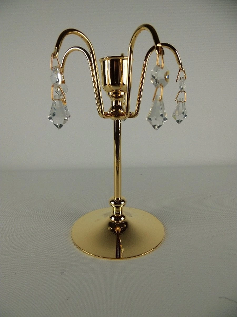 kandelaar spinvorm met tien kristallen. Goudkleurig