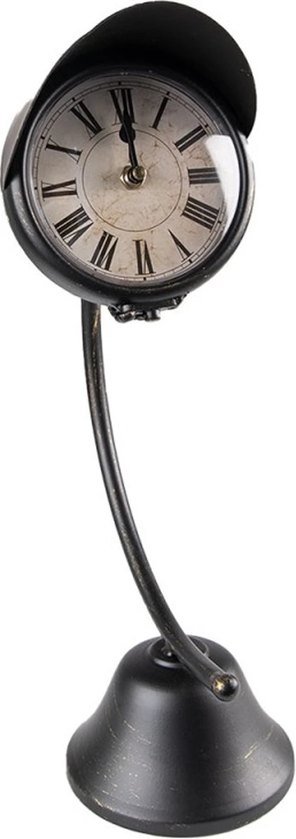 Mooie zwarte landelijke tafelklok van metaal met een witte wijzerplaat en romeinse cijfers, van ons huismerk. De wijzerplaat is Ø 10 cm en werkt op 1x AA. Tafelklokken Binnen Staand Klokje Tafelklokje