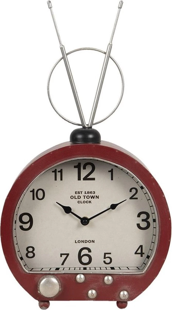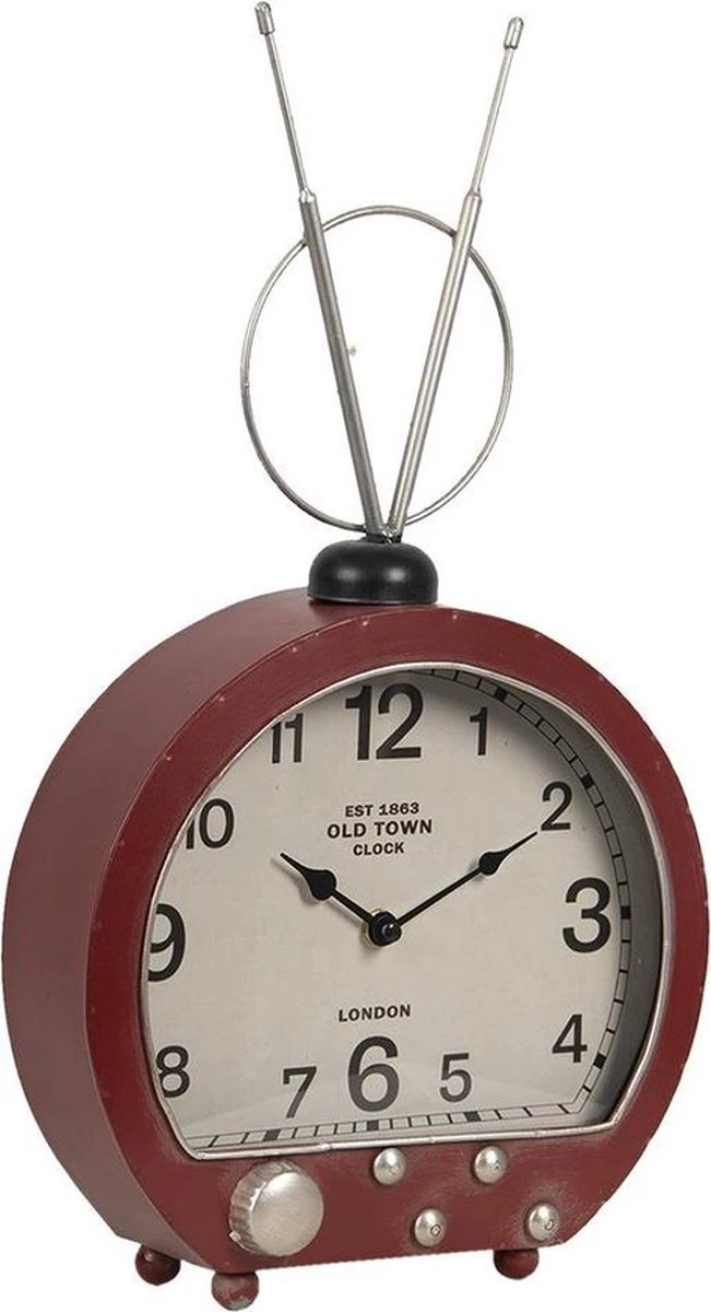 Retro Vintage Rood Tafelklok Tafelklokken Binnen Staand Klokje Tafelklokje Metaal Rond