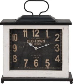 Landelijke wit zwarte ijzer met houten tafelklok van ons huismerk.