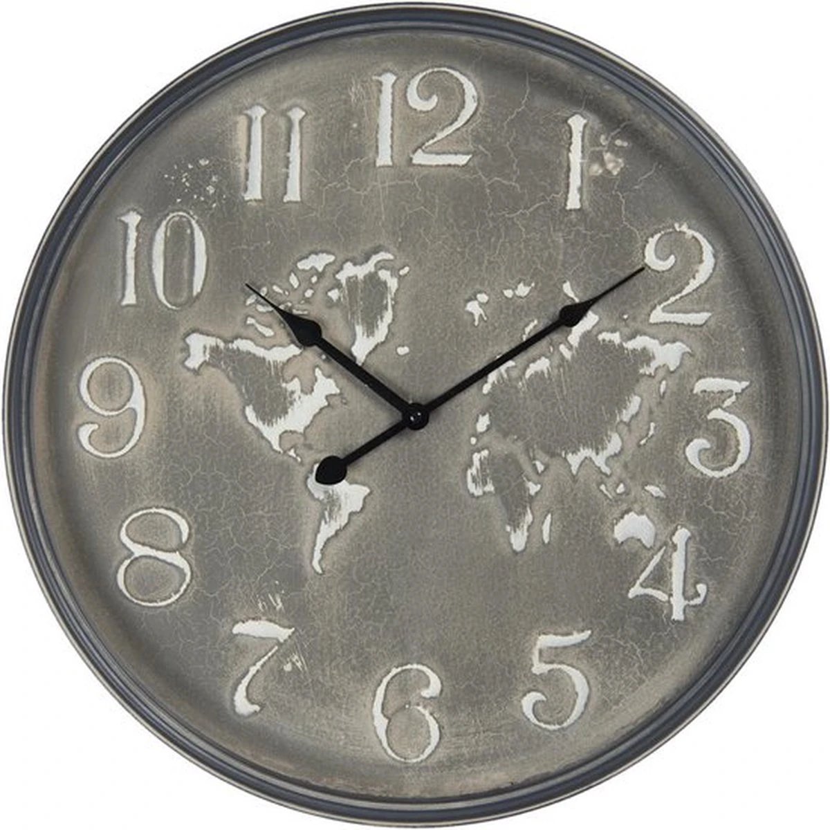 Wandklok Muurklok Grijs Ijzer Wereldkaart