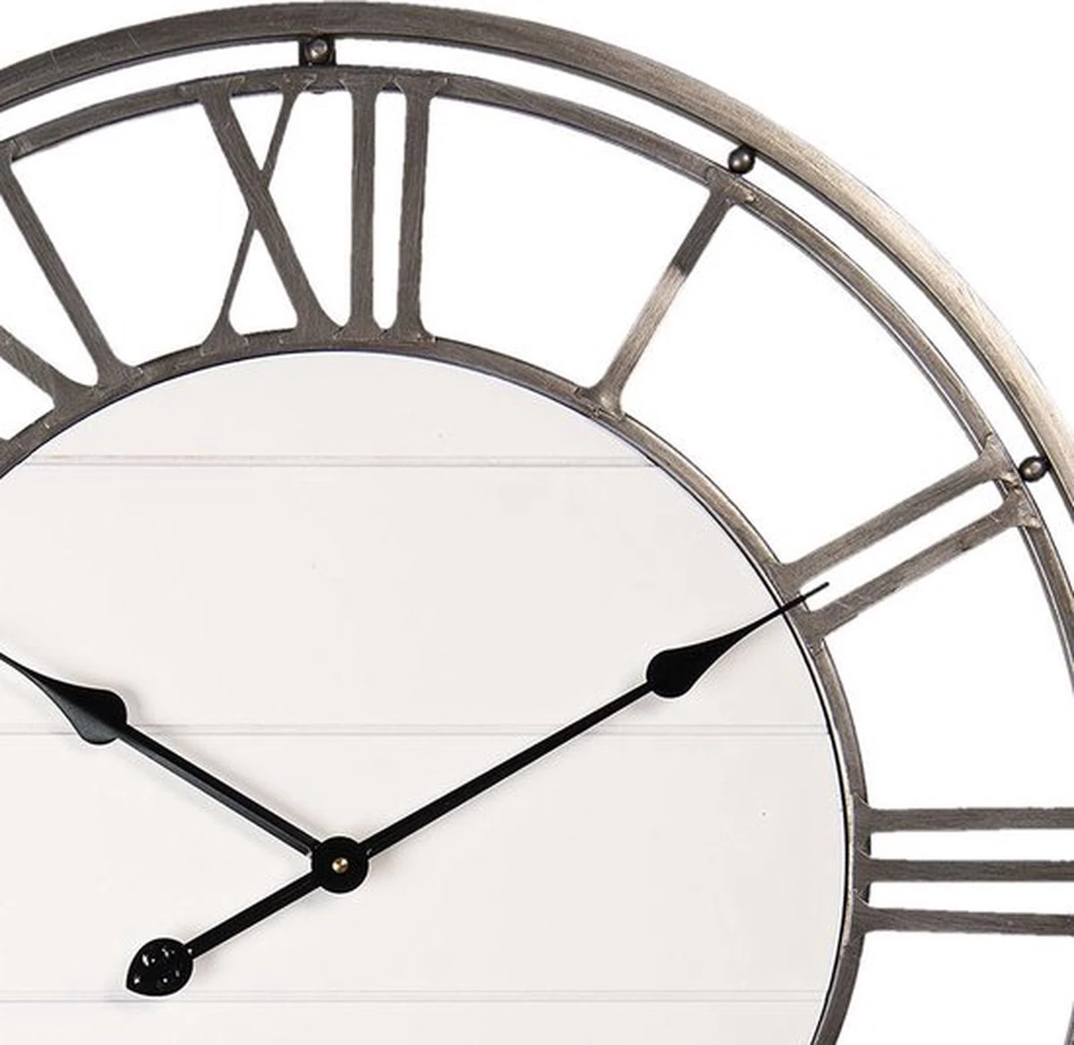 Deze houten wandklok is een landelijke klok met een strakke uitstraling die de ideale blikvanger vormt in ieder interieur. De vintage middenplaat in combinatie met het ijzeren frame geeft het een klassiek uiterlijk