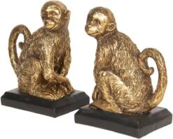Boekensteunen Set Van 2 31*11*19 Cm Goudkleurig Kunststof Apen Boekenhouders Boekensteun