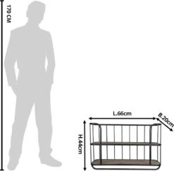 Wandrek 60*25*153 Cm Bruin Hout Ijzer Rechthoek Muurrek Opbergkast Hangkast
