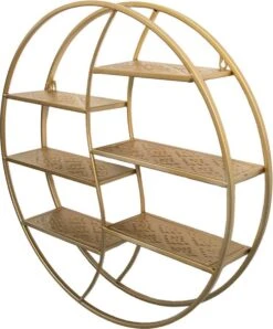 Wandrek 58*29*55 Cm Bruin Hout, Ijzer HalfRond Wandplank Wandschap