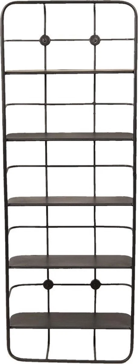 Wandrek van zwart metaal met 5 schappen van ons huismerk in landelijke stijl met industriele uitstraling.