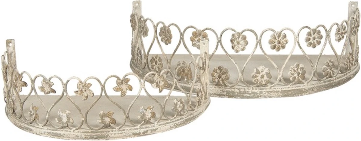 Landelijk Vintage Wit Wandrek Set 2 Wandplank Muurrek Bloemen ijzer
