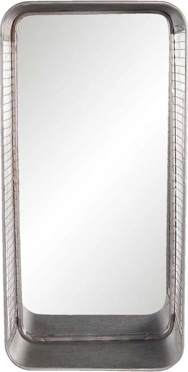 Grijs metalen rechthoekige industriele spiegel met gaas in de rand van ons huismerk